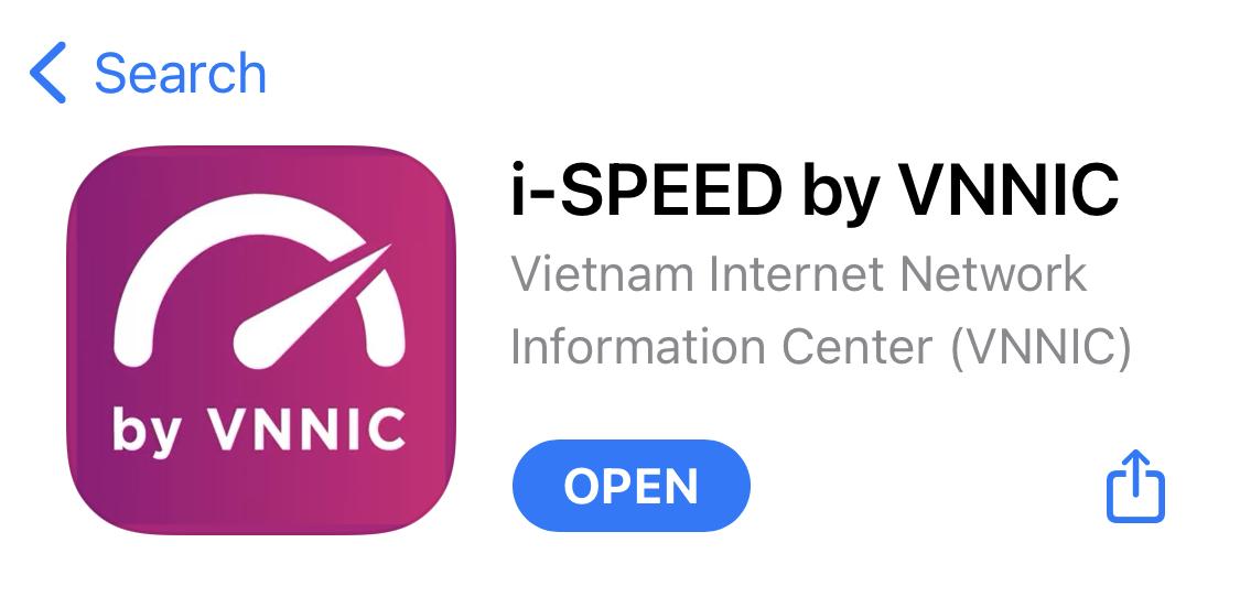 - Tìm ứng dụng với các từ khoá: i-speed by VNNIC; speedtest vn; ispeed; i-speed