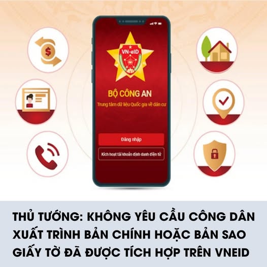 "Đề nghị các cơ quan, tổ chức, cá nhân ngoài nhà nước khi tiếp nhận, giải quyết các thủ tục giao dịch dân sự, thương mại và các hoạt động khác trong đời sống xã hội không yêu cầu công dân nộp, xuất trình bản chính hoặc bản sao các giấy tờ, tài liệu đã được tích hợp trên VNeID khi công dân đã xuất trình thông tin tương ứng từ VNeID".