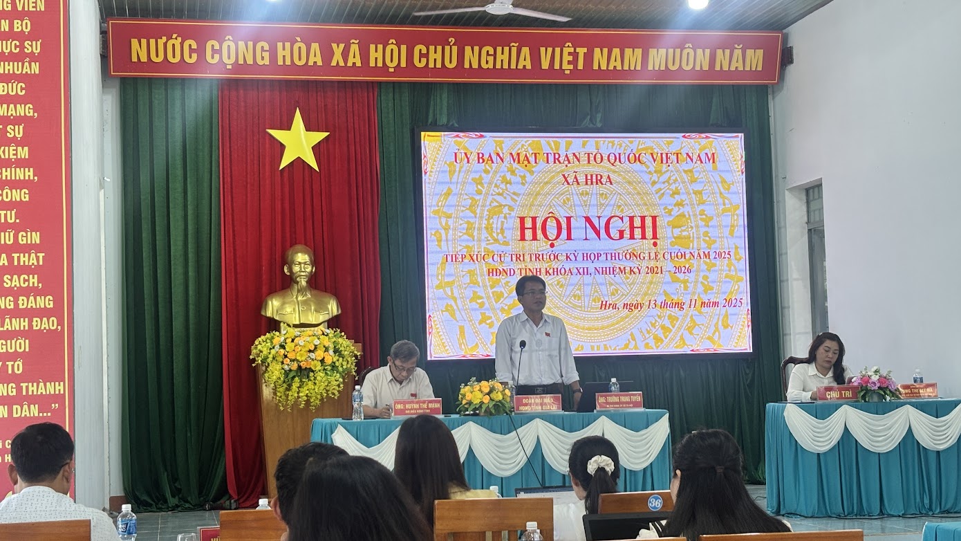 Hội nghị tiếp xúc cử tri lần này là dịp quan trọng để cử tri xã Hra trực tiếp phản ánh tâm tư, nguyện vọng đến các đại biểu dân cử, qua đó thắt chặt mối quan hệ gắn bó mật thiết giữa cử tri với HĐND tỉnh, góp phần xây dựng chính quyền ngày càng vững mạnh.