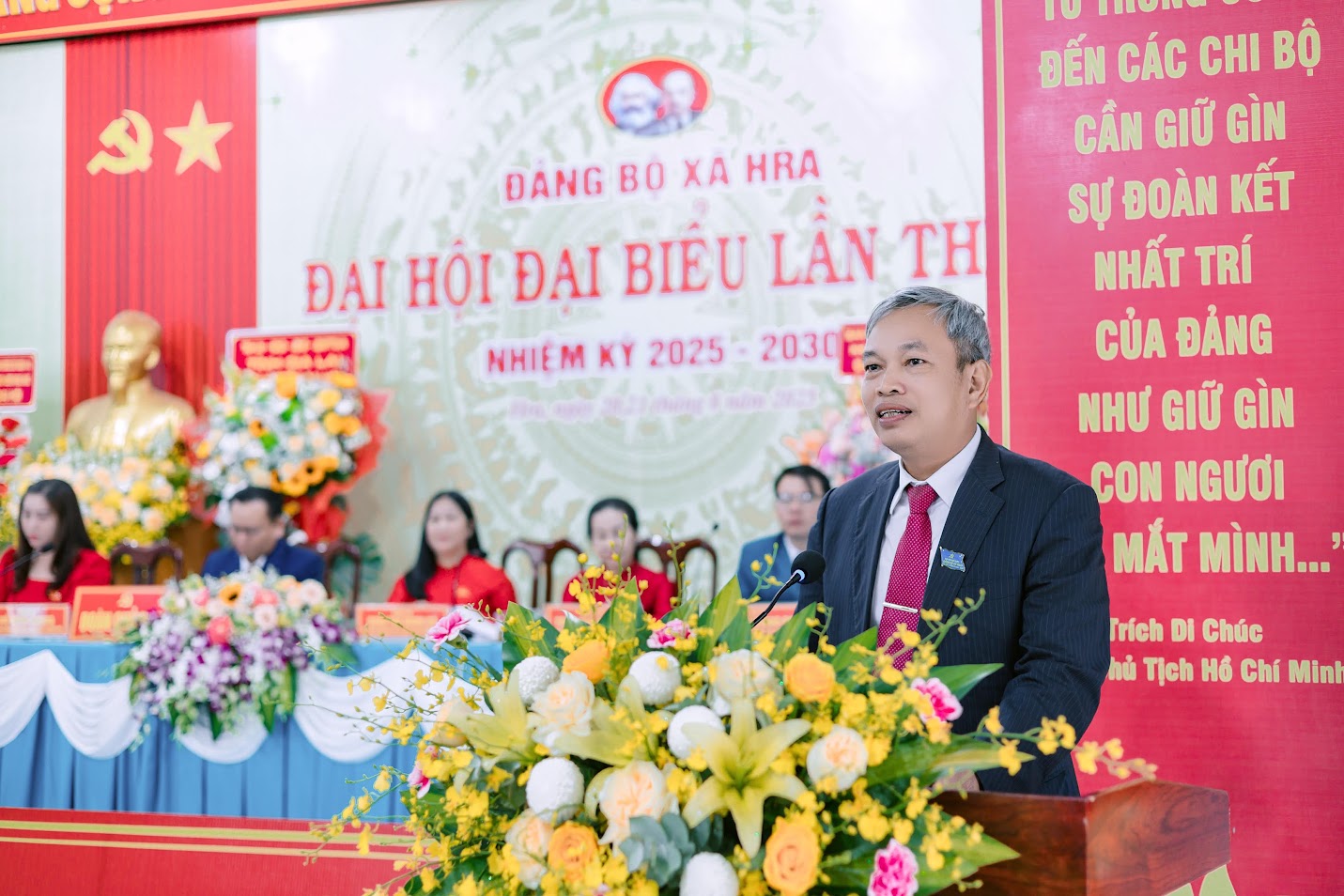 Phát biểu chỉ đạo tại Đại hội, đồng chí Đặng Vĩnh Sơn, Trưởng ban Nội chính Tỉnh ủy, đã ghi nhận và biểu dương những nỗ lực, tinh thần đoàn kết của Đảng bộ, chính quyền và nhân dân xã Hra.