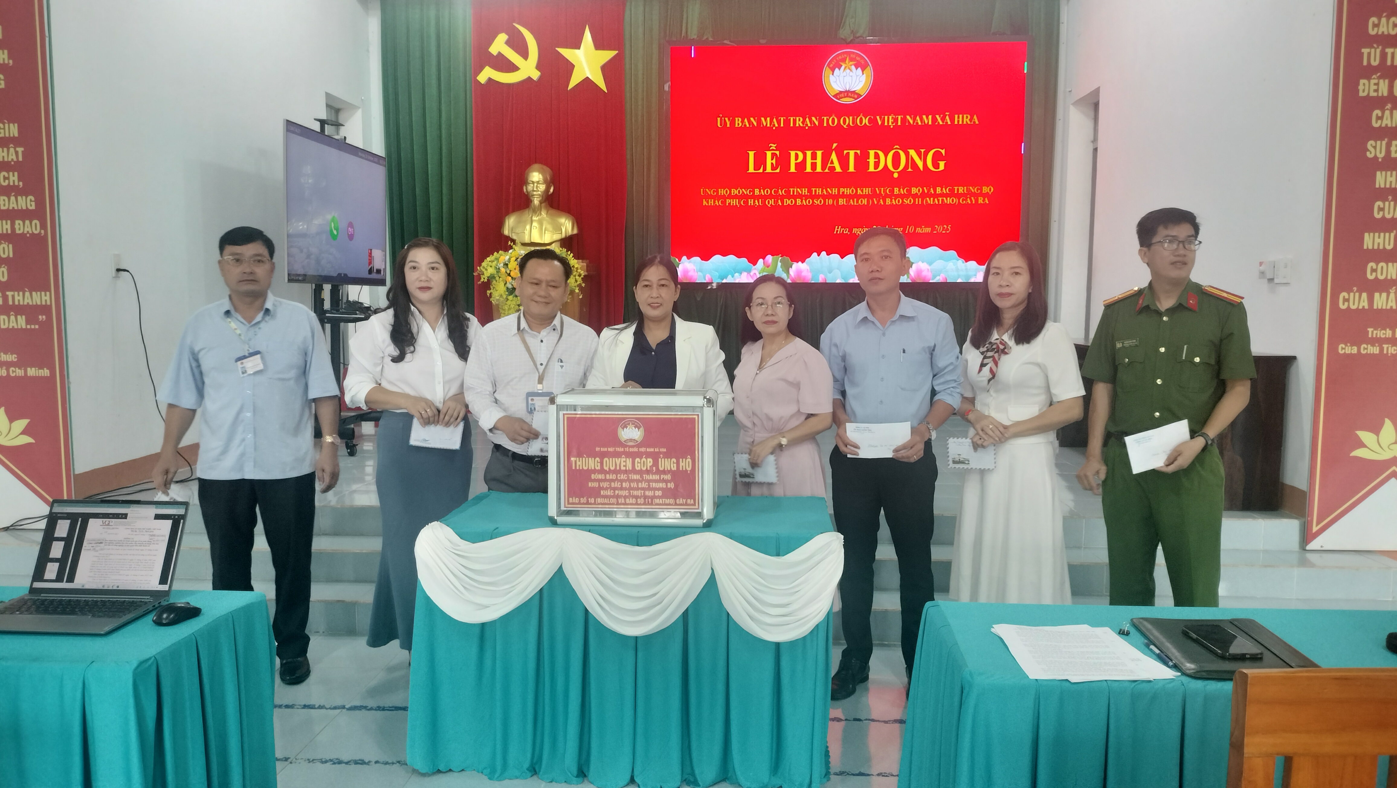 Sáng ngày 20/10/2025, tại trụ sở Ủy ban nhân dân xã Hra, Đảng ủy – HĐND – UBND – UBMTTQ Việt Nam xã tổ chức Lễ phát động quyên góp, ủng hộ đồng bào các tỉnh, thành phố khu vực Bắc bộ và Bắc Trung bộ khắc phục hậu quả do bão số 10 (Bualoi) và bão số 11 (Matmo) gây ra. Tham dự buổi lễ có các đồng chí lãnh đạo Đảng ủy, chính quyền, các ban ngành, đoàn thể, cùng toàn thể cán bộ, công chức, viên chức, lực lượng vũ trang, các trường học, thôn làng, các doanh nhân và các nhà hảo tâm trên địa bàn xã.