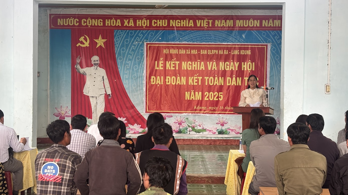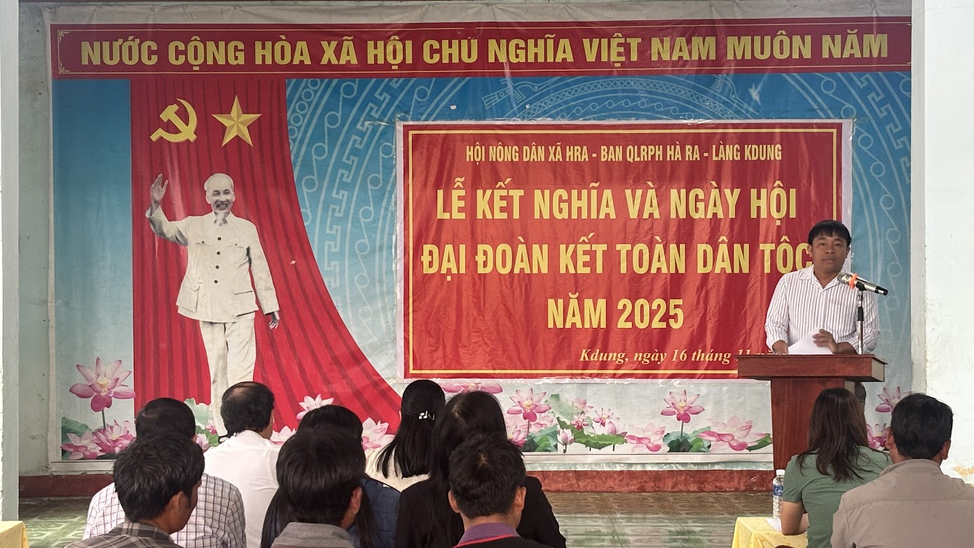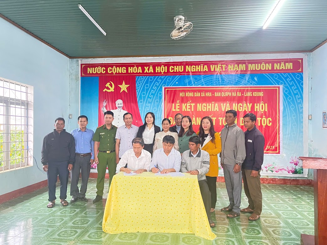 Trọng tâm của sự kiện là Lễ ký kết kết nghĩa giữa ba đơn vị: Hội Nông dân xã Hra, Ban Quản lý Rừng phòng hộ (QLRPH) Hà Ra và Làng Kdung. Đây là một mô hình phối hợp mới, mang tính thực tiễn cao, xuất phát từ chính yêu cầu của địa phương.