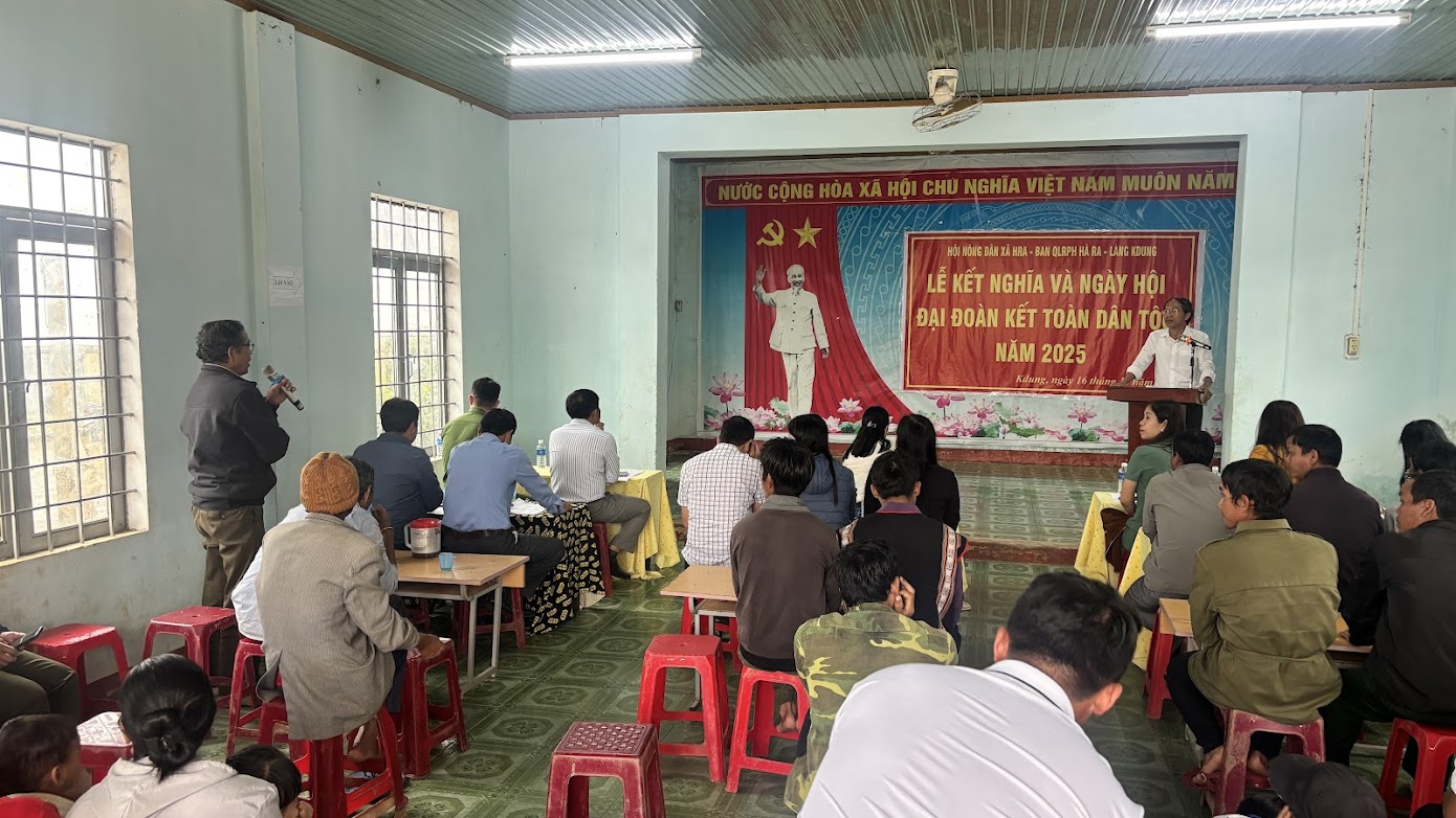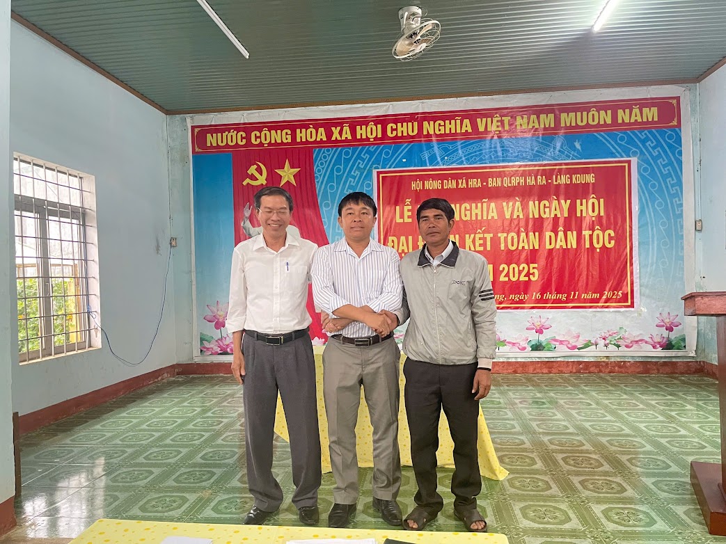 Hòa chung không khí thi đua sôi nổi của cả nước hướng tới kỷ niệm Ngày truyền thống Mặt trận Tổ quốc Việt Nam (18/11), sáng ngày 16/11/2025, tại Nhà rông văn hóa làng Kdung, xã Hra, đã diễn ra "Lễ Kết nghĩa và Ngày hội Đại đoàn kết toàn dân tộc năm 2025".