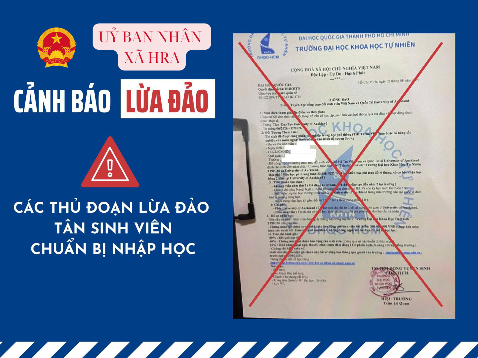 Chính quyền xã Hra kêu gọi các bậc phụ huynh và toàn thể nhân dân cùng chung tay nâng cao nhận thức, chia sẻ thông tin để bảo vệ thế hệ sinh viên, tránh những sự việc đáng tiếc "tiền mất, tật mang", giúp các em có một khởi đầu an toàn và thành công trên chặng đường đại học.