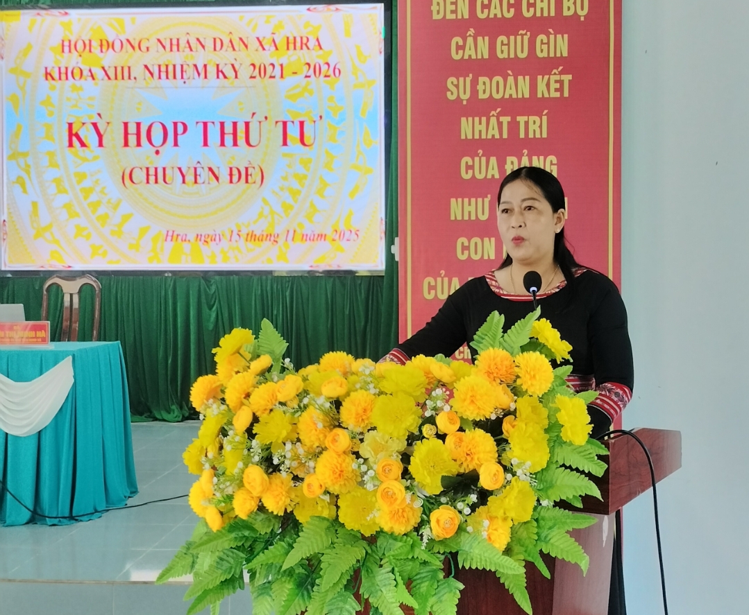 Trong lời bế mạc, Chủ tịch HĐND xã Đinh Thị Minh Hà ghi nhận tinh thần làm việc nghiêm túc của đại biểu và nhấn mạnh rằng các nghị quyết được thông qua sẽ là cơ sở quan trọng để UBND xã triển khai nhiệm vụ năm 2025, góp phần nâng cao đời sống Nhân dân và thúc đẩy sự phát triển bền vững của xã Hra.