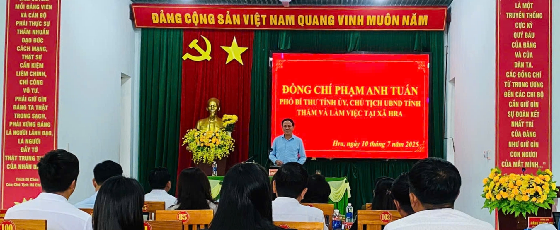 Sáng 10/7, Đoàn công tác do đồng chí Phạm Anh Tuấn – Phó Bí thư Tỉnh uỷ, Chủ tịch UBND tỉnh làm Trưởng đoàn đã tới thăm, kiểm tra tình hình hoạt động sau sáp nhập tại xã Hra. Đi cùng đoàn có đại diện lãnh đạo một số sở, ngành của tỉnh.